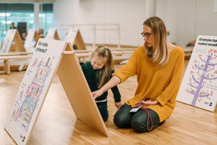 Līdz 27. martam izglītojošā un interaktīvā izstāde bērniem “Vai grāmatai ir knābis?” skatāma Rīgas Centrālās bibliotēkas filiālbibliotēkā Pārdaugava. Izstādes apmeklētāji var izsekot grāmatas tapšanas ceļam no rakstnieka radīta stāsta līdz grāmatplauktam. Bērni, paši darbojoties, noskaidro, kur rodas grāmatas, kā ienākt grāmatā, iemācās sacerēt stāstus, iejusties mākslinieka lomā, iepazīt burtus un redzēt, kā tie satiekas vārdos.