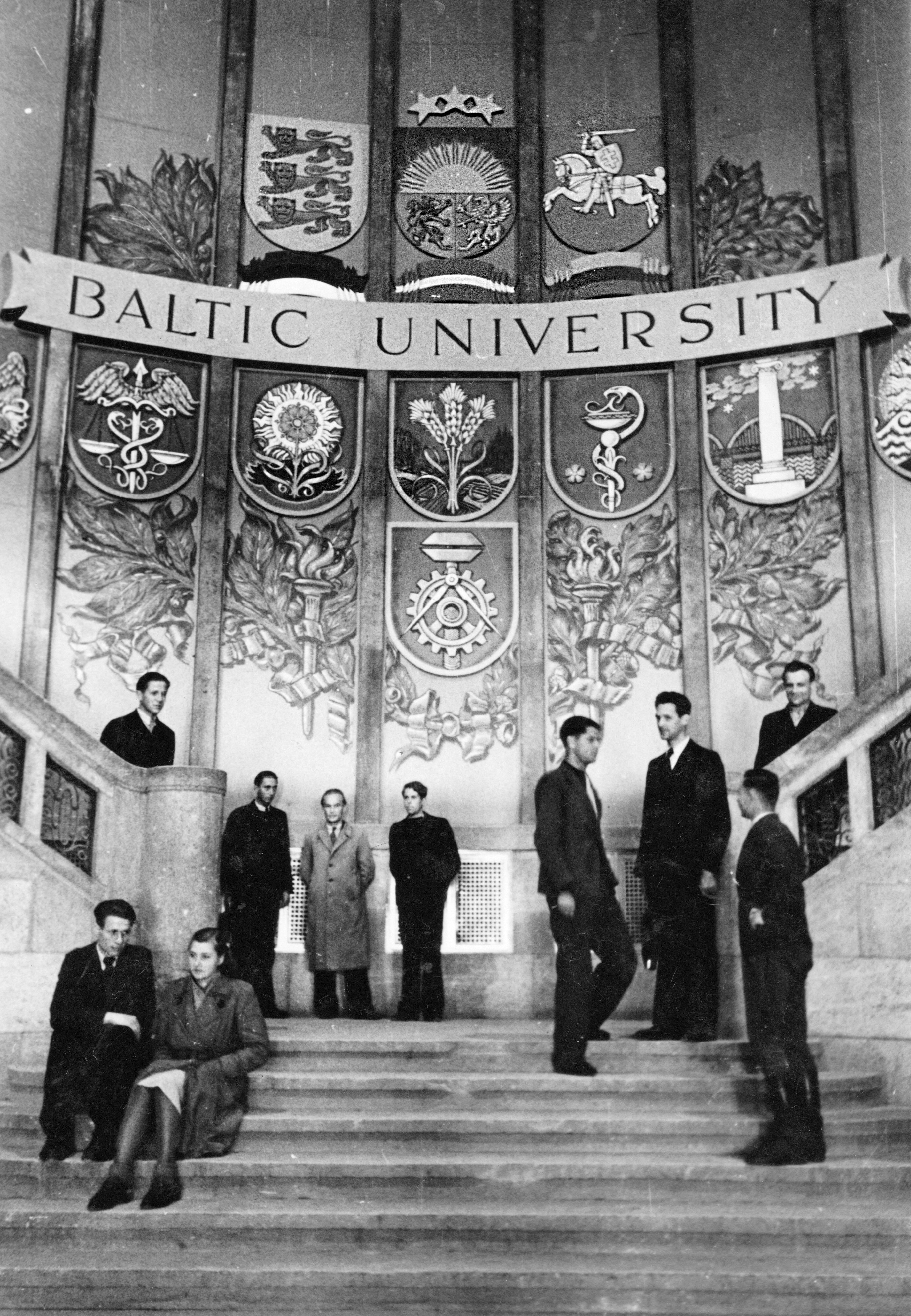 Pēc Otrā pasaules kara, 1946. gada pavasarī, kara izpostītajā Hamburgā, Vācijā, trimdā devušies Latvijas Universitātes mācībspēki kopā ar igauņu un lietuviešu kolēģiem nodibināja unikālu augstskolu – Baltijas Universitāti. Tās mērķis bija dot iespēju iegūt augstāko izglītību jauniešiem no Baltijas valstīm, kuri atradās neskaitāmās bēgļu nometnēs Vācijā un kara apstākļu dēļ bija spiesti pārtraukt studijas. Baltijas Universitāte šiem jauniešiem sniedza ne vien zināšanas, bet arī cerību un pamatu nākotnei. Universitāte vēlāk tika pārcelta uz Pinebergu un darbojās trīsarpus gadus – līdz 1949. gada septembrim. Augstskolā bija astoņas fakultātes, un tās pastāvēšanas laikā to apmeklēja vairāk nekā 2000 studentu no Latvijas, Lietuvas un Igaunijas. Baltijas Universitāte darbojās Apvienoto Nāciju Organizācijas Palīdzības un rehabilitācijas administrācijas un Britu zonas Militārās valdības paspārnē.