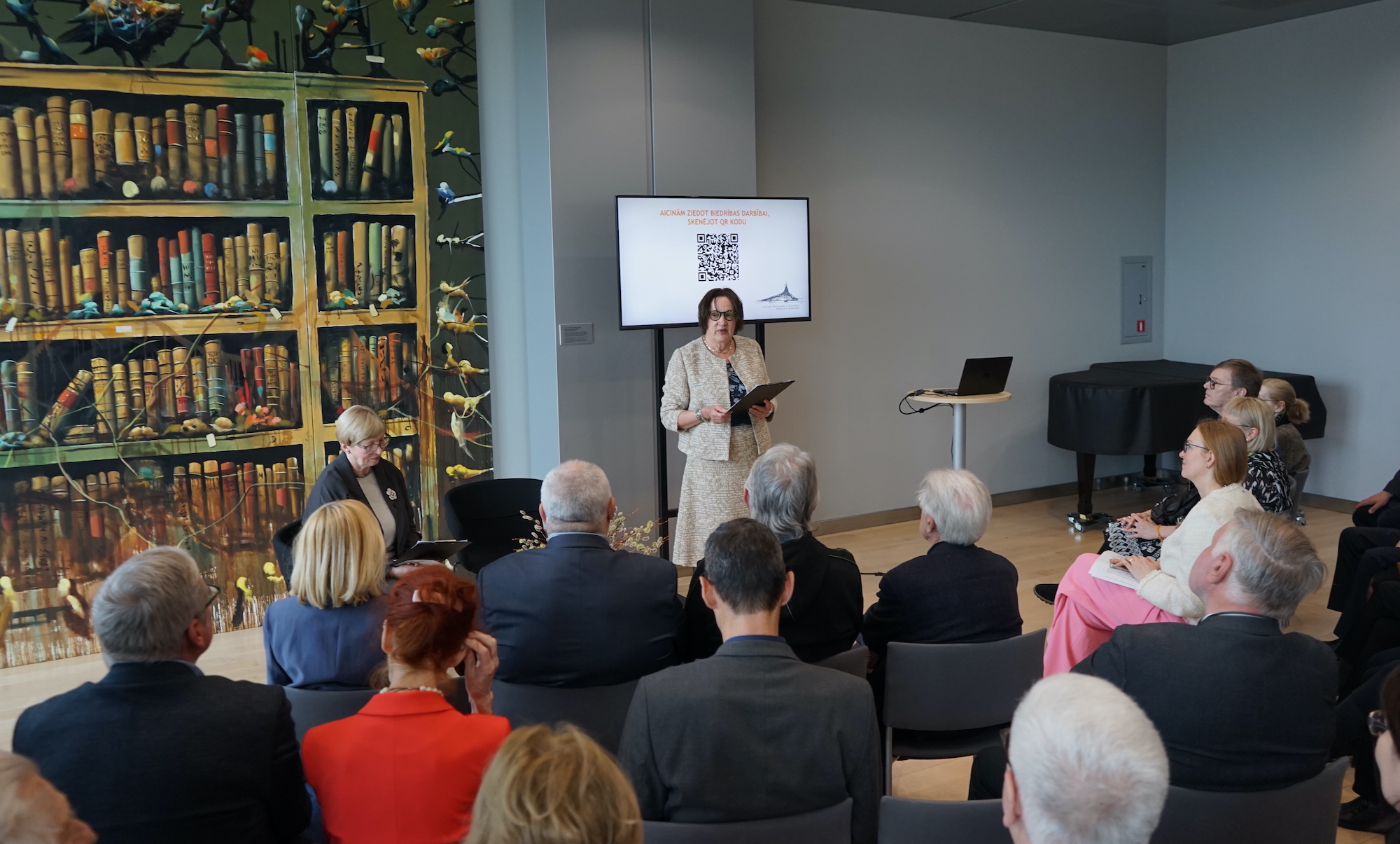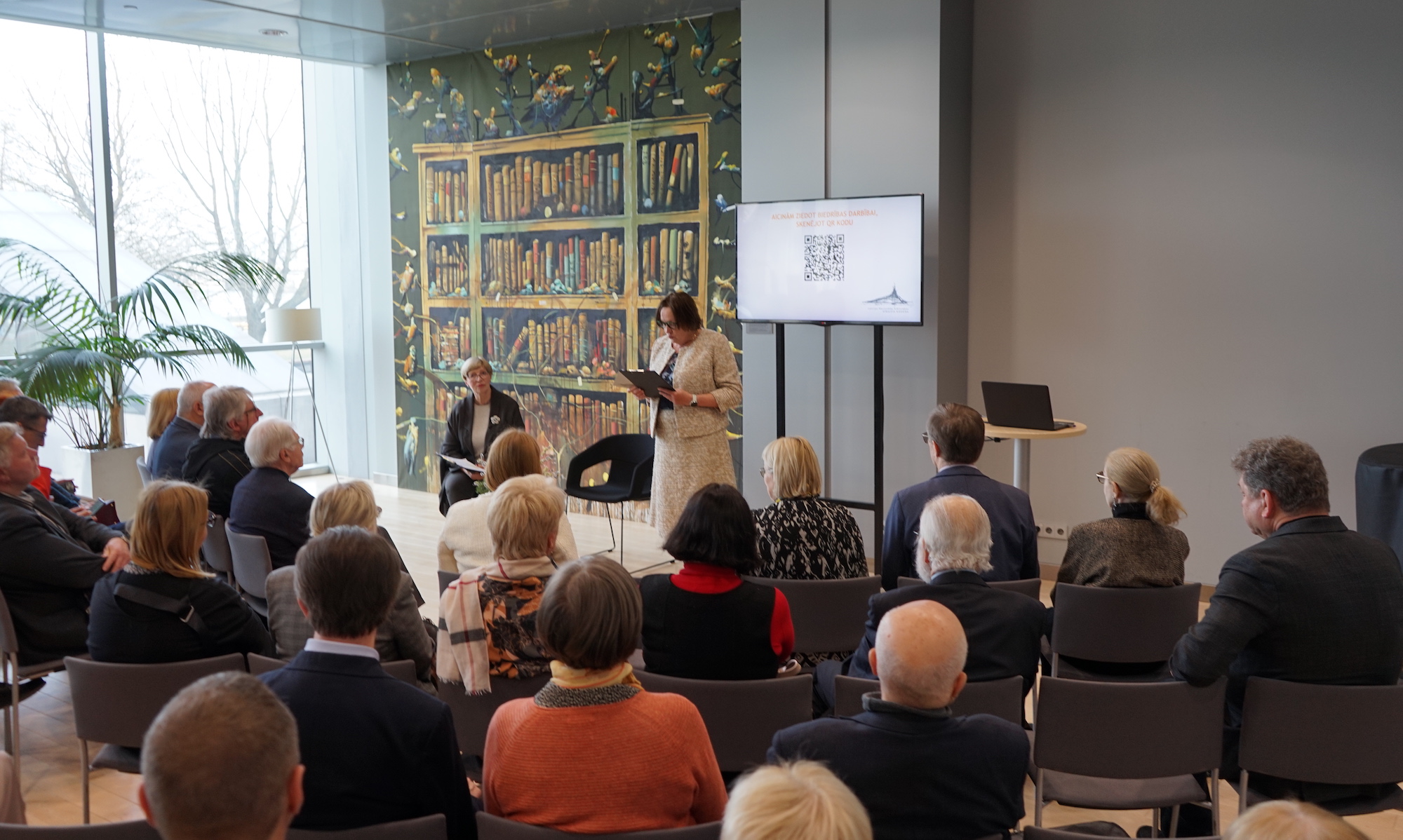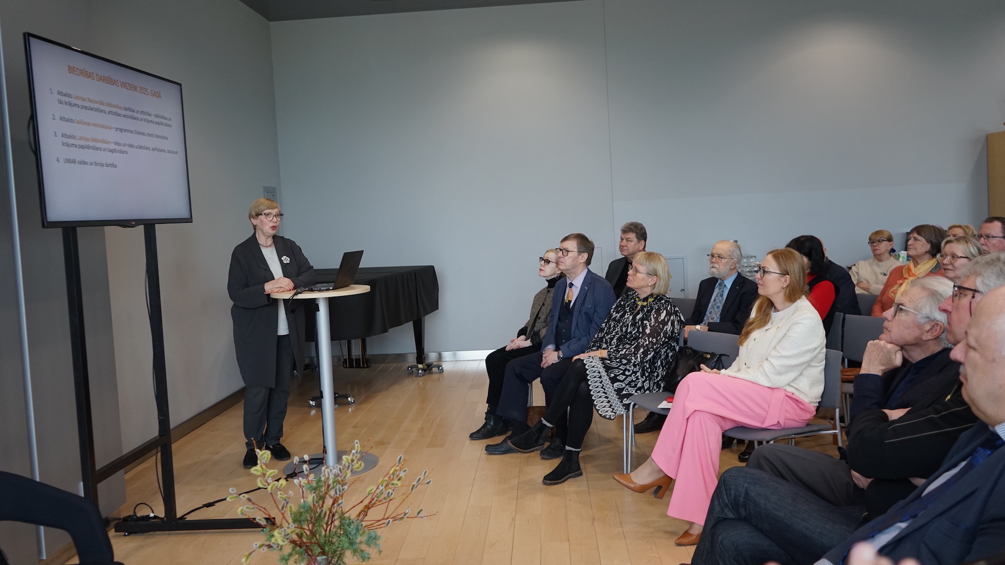 Kopsapulci vadīja valdes priekšsēdētāja Undīne Būde, klātesošos uzrunāja Latvijas Nacionālās bibliotēkas direktore Dagnija Baltina, Biedrības 2025. gada darbību prezentēja direktore Karina Pētersone.